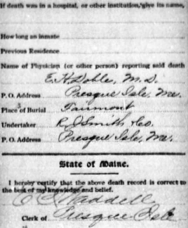 She is buried at Fairmount Cemetery in Presque Isle.