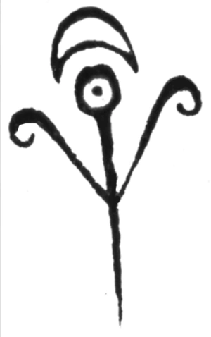 - Tattoo of an abstract flower with a moon above left collarbone.