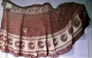 - Skirt that was red and white with a peacock design on the bottom portion.