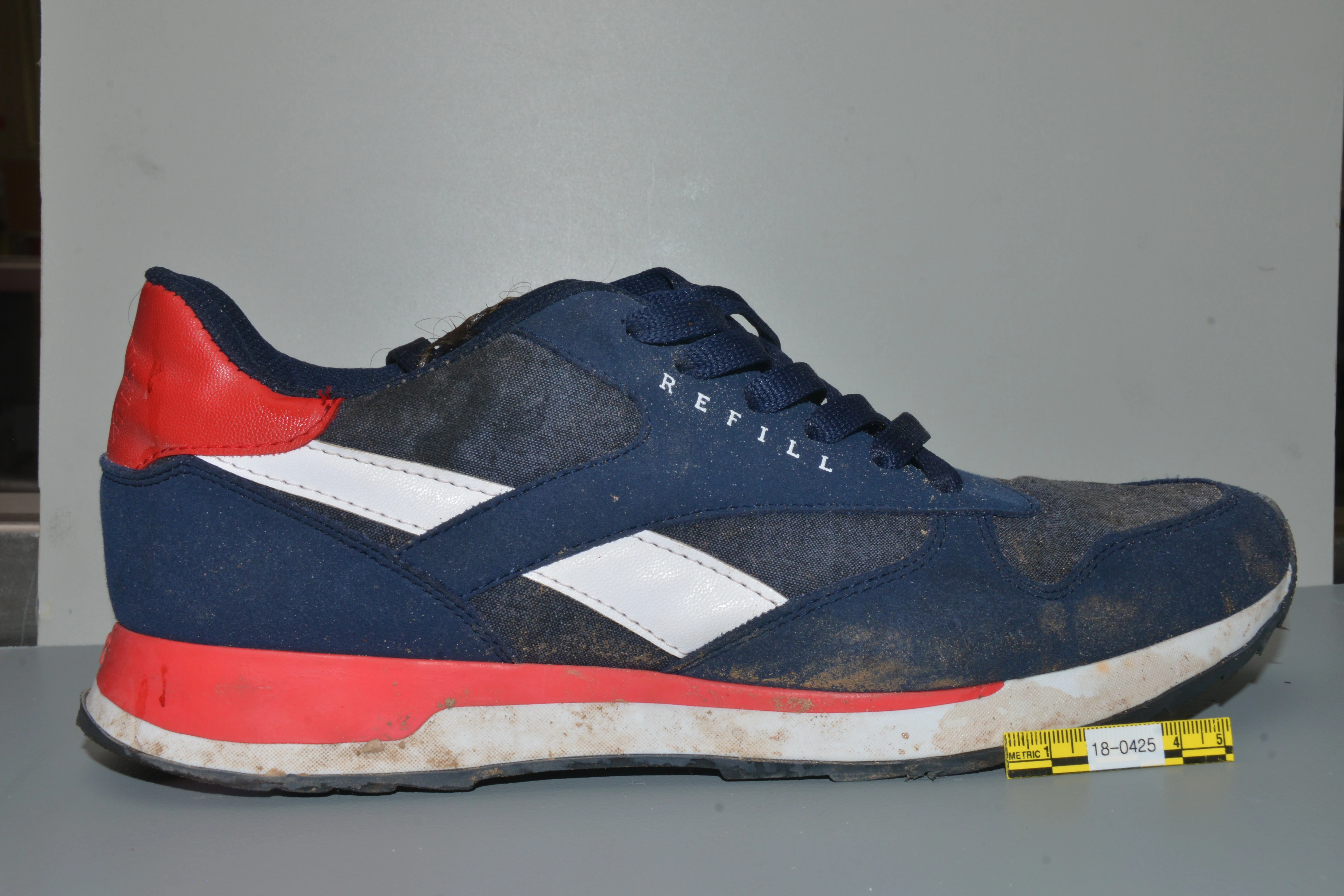 - Blue, red and white Refill sneaker.