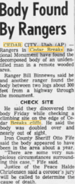 The Ogden Standard-Examiner (July 17, 1964) article on the case.