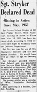 James Nelson Stryker was a United States Army soldier who went missing in action during the Korean War on May 18, 1951. His remains were later recovered that month but were not identified until August 5, 2020.