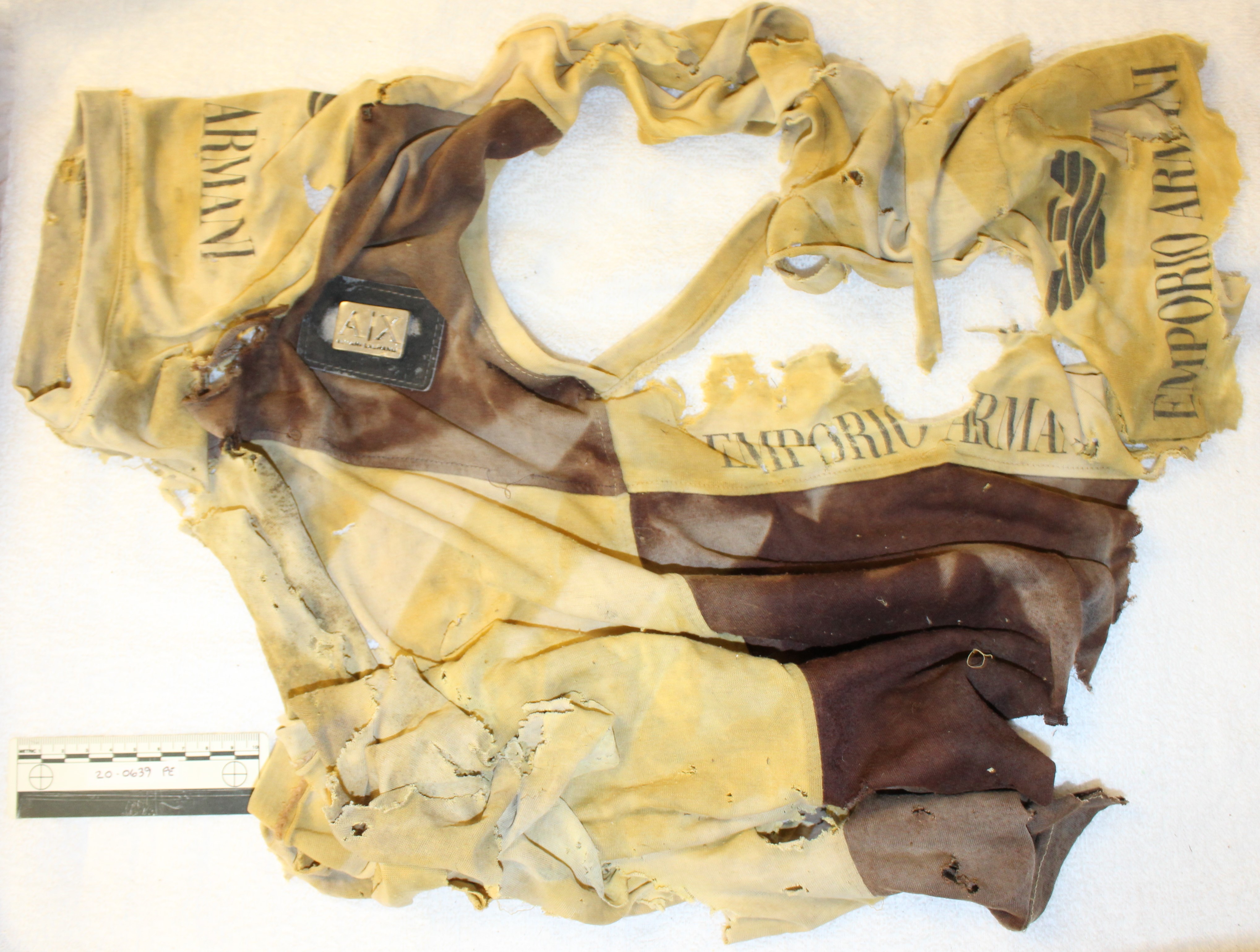 - Yellow and brown Armani Exchange shirt.