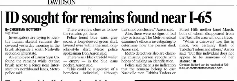 Nashville John Doe was a man who was found at the bottom of an embankment in a wooded area in Nashville, Tennessee.