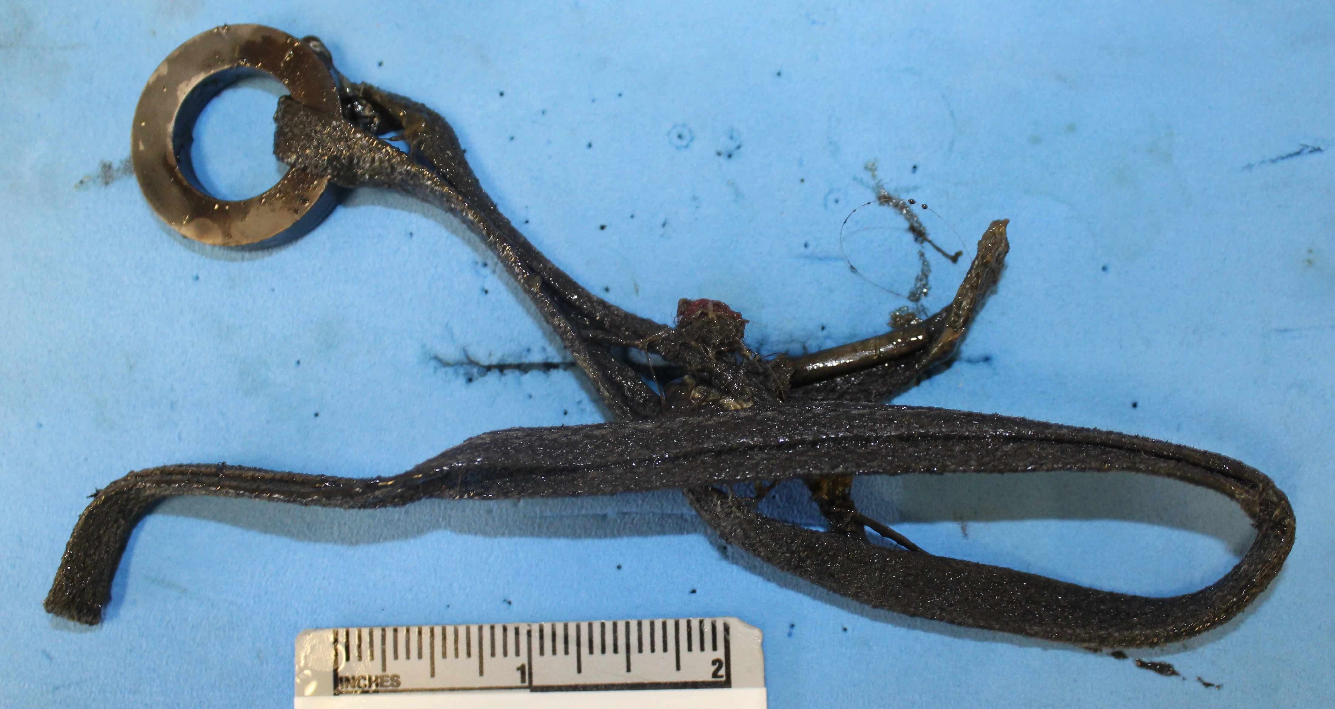 - Black hair tie worn on finger.