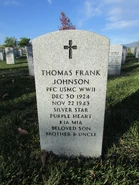 Thomas Frank Johnson was a United States Marine private who was killed in action during the Battle of Tarawa on Betio Island of the Gilbert Islands, now part of Kiribati. His remains were identified on May 6, 2020. His brother, Hugh, was also killed in that battle and remains Missing in Action.