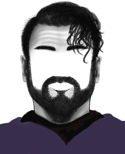 - Full beard and mustache.